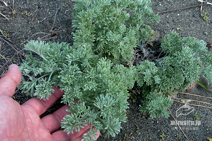 カワラヨモギは海岸砂浜などにしばしば群生する。