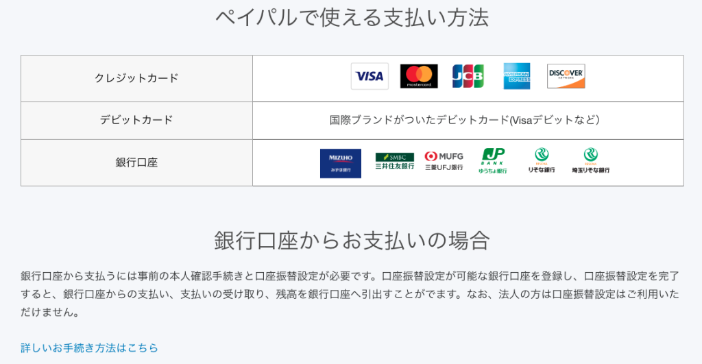 こちらにPaypalのWebサイトのリンク先からご確認ください。